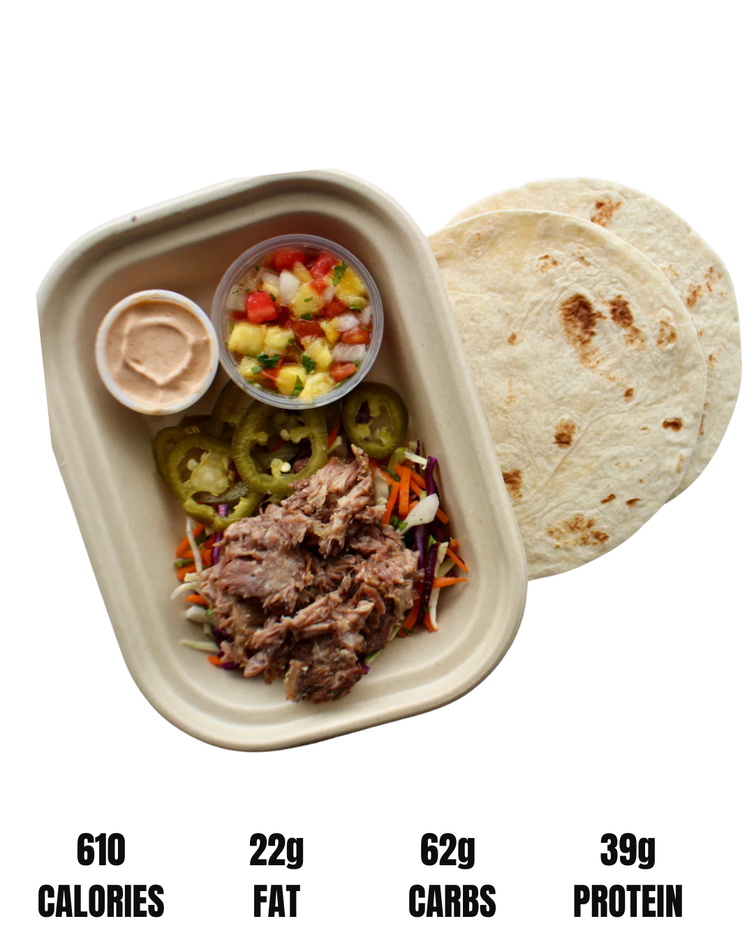 Choice of protein. sides of fresh cut pineapple salsa. polynesian hot sauce. crunchy fresh slaw.