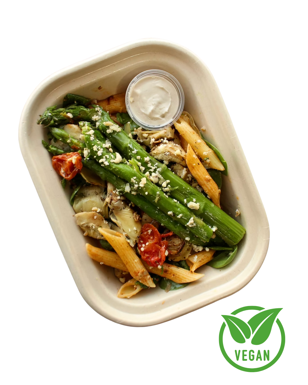 grilled artichoke hearts. garlic & balsamic sun-dried tomatoes. cashew Alfredo. De Cecco pasta pasta tossed with fresh spinach, leeks & shallots + steamed asparagus.